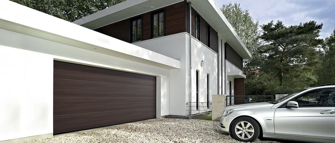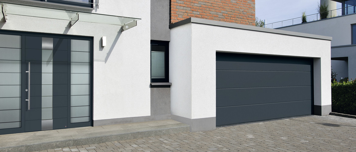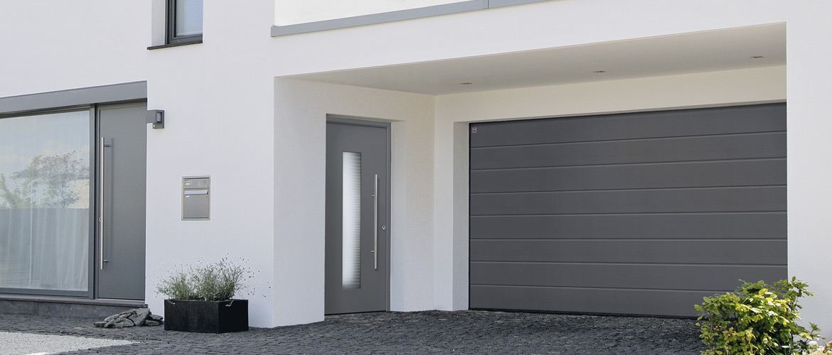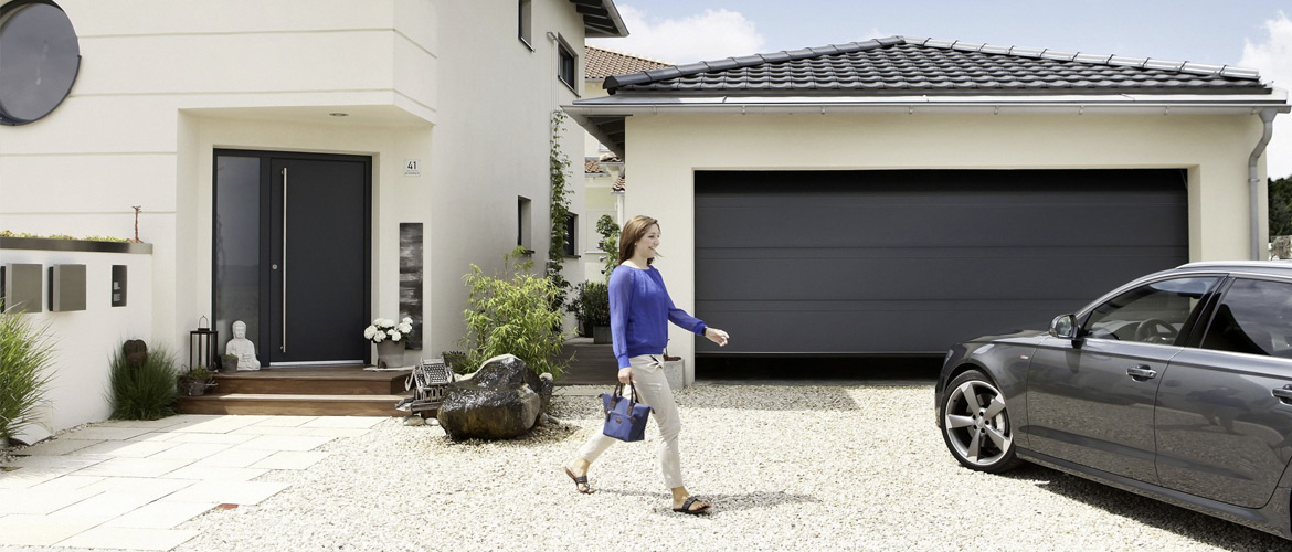 Elegantna avtomatska sekcijska garažna vrata se odpirajo navpično navzgor. Tako pridobite več prostora v garaži in pred njo - in na voljo imate celoten prehod. Sekcijska garažna vrata so vedno primerna - ne glede na to, ali je oblika garažne odprtine pravokotna ali poševna, ali če ima segmentni ali polkrožni lok.