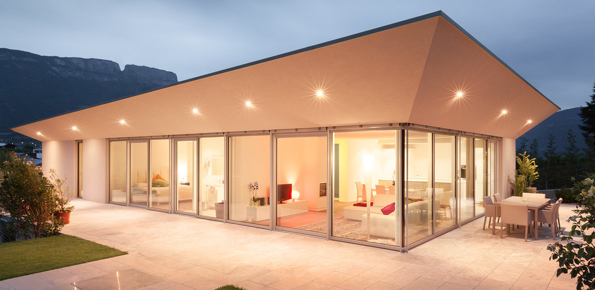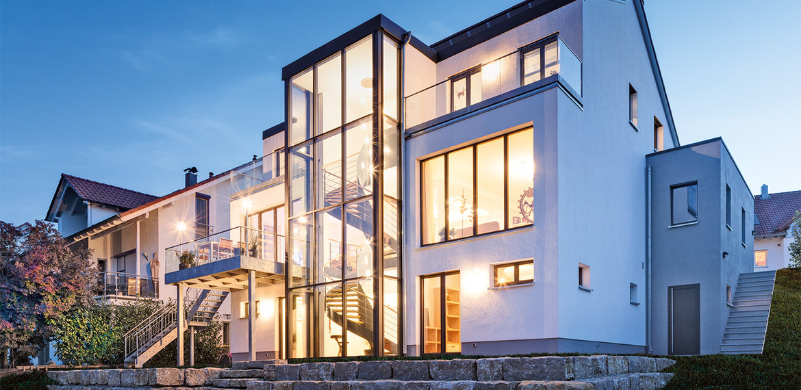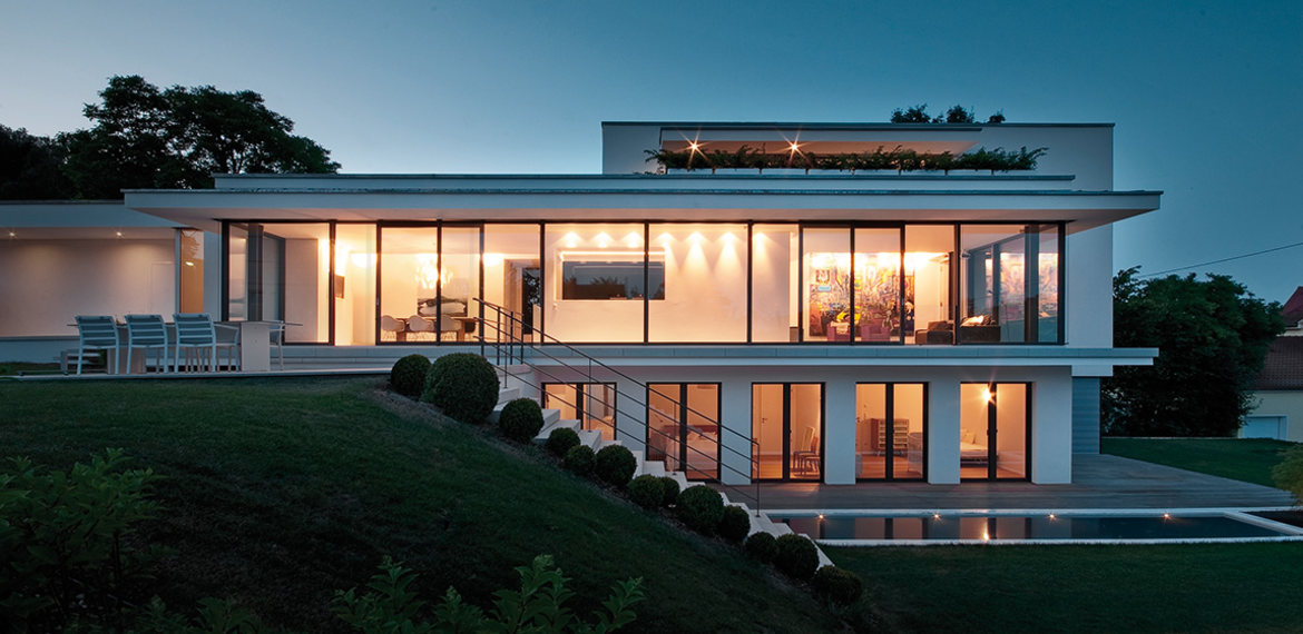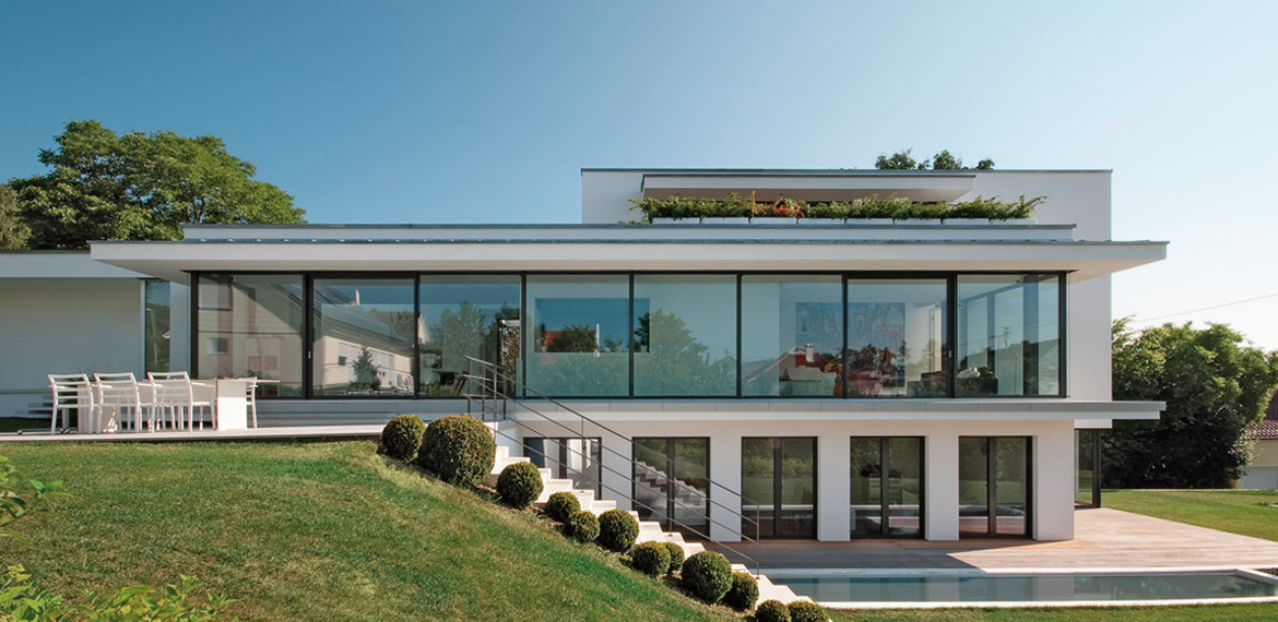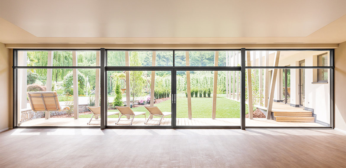 Sodoben, ravnih linij in tanek: takšen je naš sistem za zastekljene stene Vista. Velike steklene površine in tanka zasnova brišejo meje med notranjostjo in zunanjostjo.