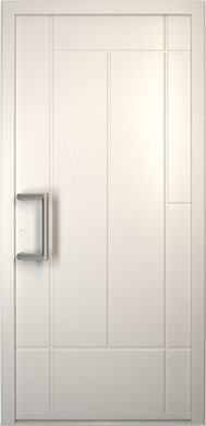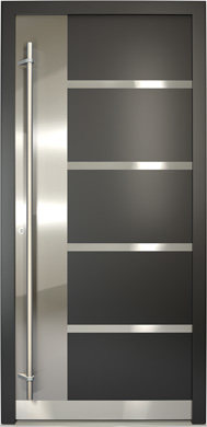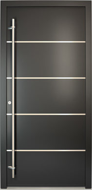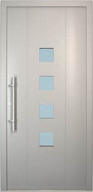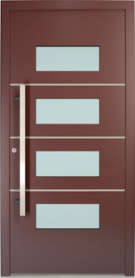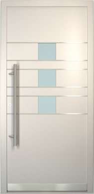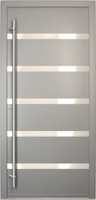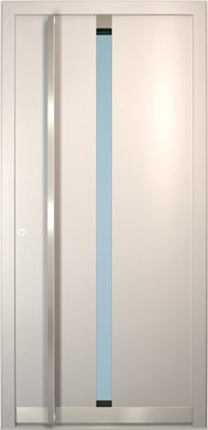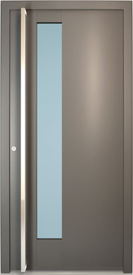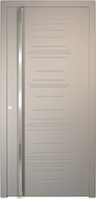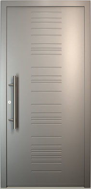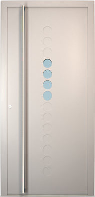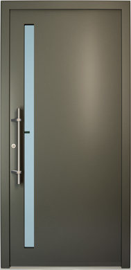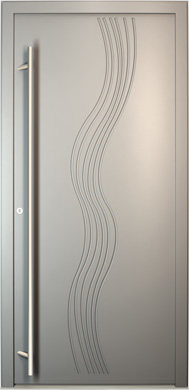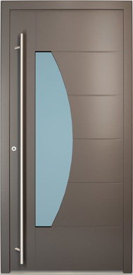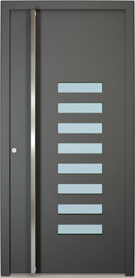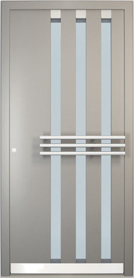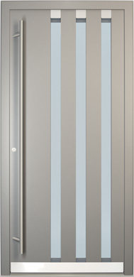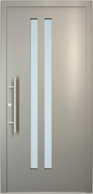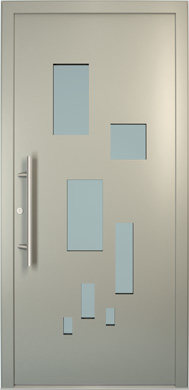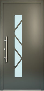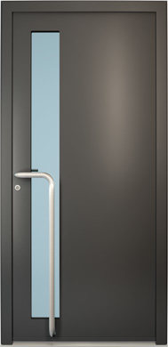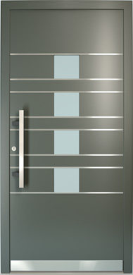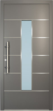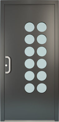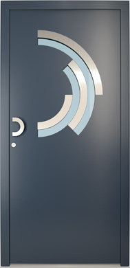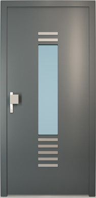 Galant model odlikuje elegantno prepletanje steklenih izrezov in aluminijastih nanosov. Interakcija med prosojnostjo in odsevnostjo doda globino in živahnost vhodnim vratom.