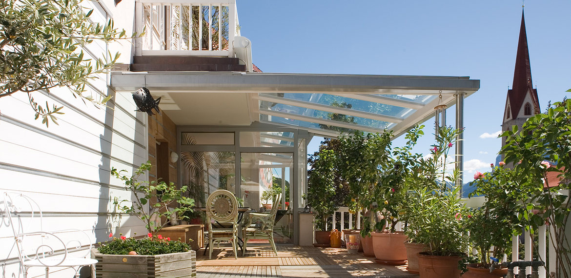 Nadstreški zagotavljajo občutno zaščito pred večerno ohladitvijo, ker pa bo vaša terasa zaščitena pred vremenom, jo lahko uredite po željah in naredite prijetnejšo za bivanje. Ta učinek boste še okrepili z našimi stranskimi elementi za zaščito pred vetrom.